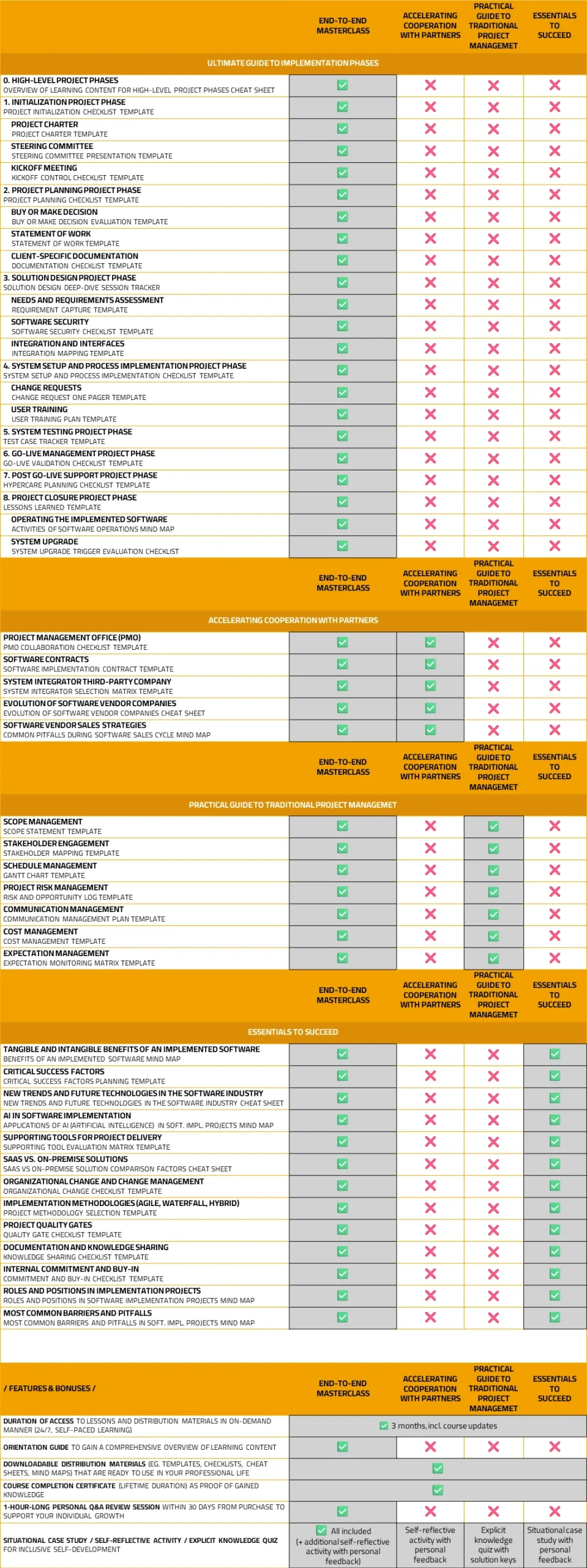 The courses are going to prepare you for many challenges and pitfalls that are linked to software implementation projects, whether these are in agile, hybrid, or waterfall environments.